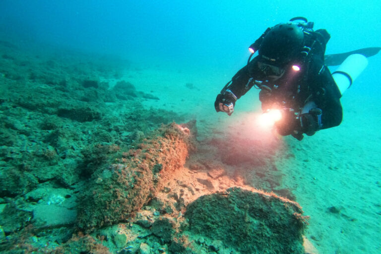 Un dels submarinistes que van trobar l’artefacte. Data de publicació: dimarts 20 de desembre del 2022, 14:05. Localització: Sant Feliu de Guíxols. Autor: Cedida a l’ACN per Daniel Diaz i Lluís Jiménez
