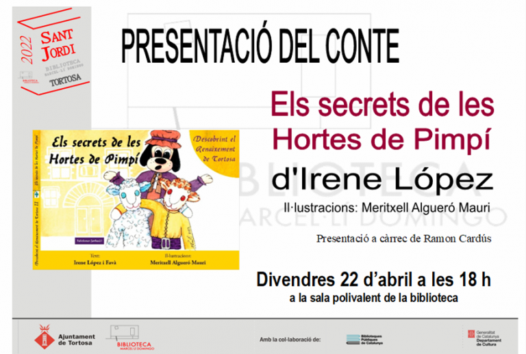 El conte es presentarà el proper divendres 22 d’abril a la sala polivalent de la Biblioteca Marcel·lí Domingo de Tortosa i comptarà amb la participació del qui fou el primer director i ideòleg de la Festa del Renaixement, Ramon Cardús, a mode d’homenatge, just enguany que se celebren els 25 anys de la Festa del Renaixement.