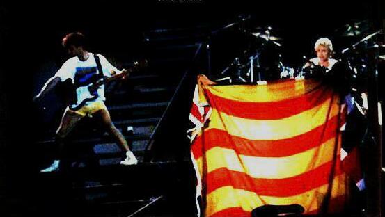 Quan la banda apareixia per a tocar un dels seus temes més coneguts, ‘We will rock you’ en els concerts de cada país estranger, en Freddie apareixia amb una bandera del país amfitrió. Però al concert de Barcelona en comptes d’una estanquera va aparèixer amb la senyera. Aquí l’únic vídeo del moment: