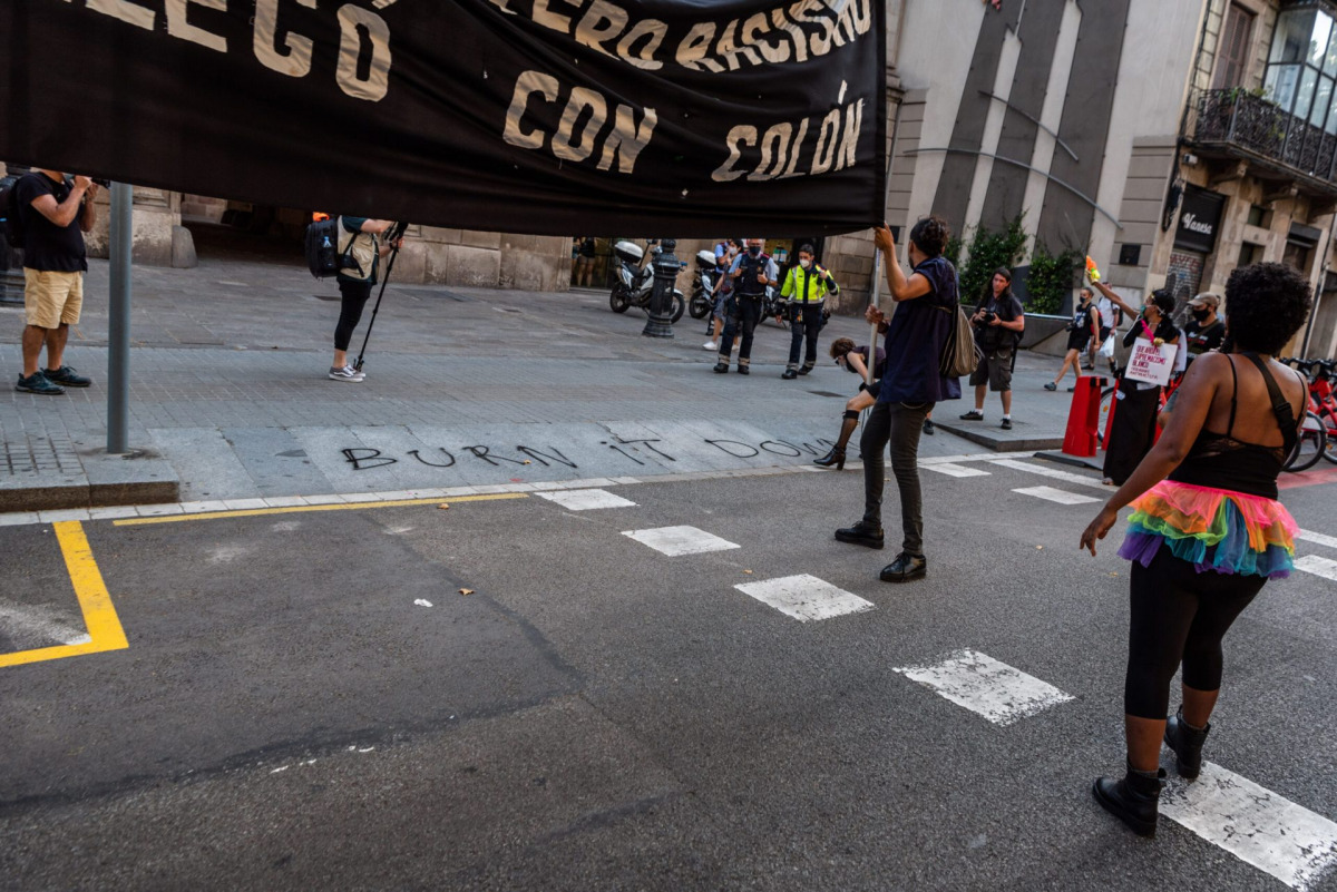 June 27, 2020; Barcelona, – On the Gay Pride Day, more than 500 people protested today in the center of Barcelona to fight for their rights as a LGTBI collective