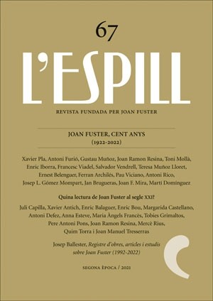 El número 67 de L’Espill dedica les seves gairebé 250 pàgines a analitzar la figura de Joan Fuster en l’any del centenari del seu naixement. Destacats autors i especialistes analitzen les diferents facetes de la seva personalitat, en tant que escriptor i un dels grans intel·lectuals de la cultura catalana. Xavier Pla, Gustau Muñoz, Toni Mollà, Teresa Muñoz, Joan F. Mira, Martí Domínguez, Pau Viciano o Juli Capilla, entre molts altres dediquen articles i anàlisis a l’obra i repercussió dels escrits i idees fusterianes, abordant “diversos aspectes de la seva obra, personalitat humana i significació històrica”.