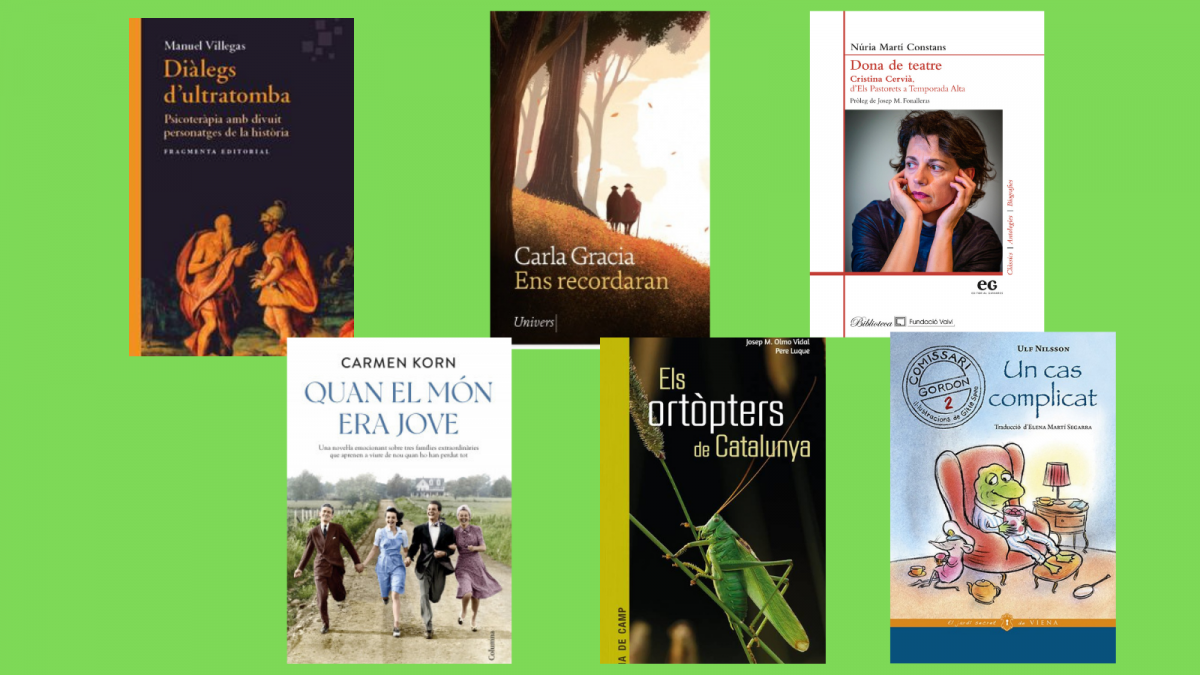 Diàlegs d’ultratomba, de Manuel Villegas (Fragmenta Editorial, 272 pàgines, 19,90 €). Assaig. El psicoterapeuta i antic professor de psicologia a la Universitat de Barcelona Manuel Villegas sotme imaginàriament a la psicoteràpia divuit personatges històrics com Verdaguer, Marilyn Monroe o Rodoreda que, de manera amena i clara, exposen els problemes que els van preocupar en vida. D’aquesta manera, l’autor pretén explicar conceptes clau de la psicoteràpia a partir de converses imaginàries, disteses però documentades, amb aquests referents, reals o de ficció, des de l’antiguitat fins als nostres dies. Així, Calígula li serveix per tractar el narcisisme despòtic, Ponç Pilat l’assertivitat, el rei David la luxúria, Ciceró les fases del dol, Dimitri Karamàzov la impulsivitat, Ellen West l’anorèxia, Maria Callas la dependència afectiva o Simone de Beauvoir l’eutanàsia.