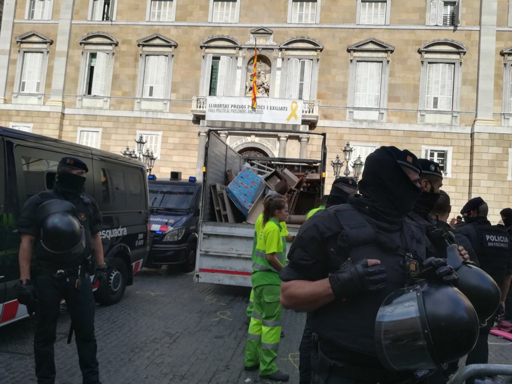 En un segon tuit, han denunciat que han llençat material personal com motxilles i mòbils a un camió de la brossa i, segons la xarxa de l’acampada, no els han deixat temps per recollir-ho.