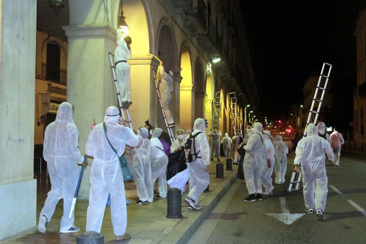 Aquesta nit un escamot ha tret els llaços grocs de La Bisbal d’Empordà. El grup format per una vuitantena de persones ha volgut “netejar poblacions amb un alt índex de plàstic groc”. La seva estranya indumentària ha suscitat divertides reaccions a les xarxes, on s’han trobat símils d’aquest inquietant grup amb diverses pel·lícules de moda. Us mostrem a continuació quatre films que poden haver servit d’inspiració a l’hora de triar la indumentària de l’escamot de neteja.