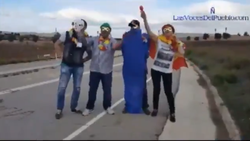Amb la presó de fons, van desplegar una pancarta dels presos tunejada al més pur estil espanyol, van posar l’himne d’Espanya i van pintar la carretera amb un gran ‘Viva España’ així com van ratllar els llaços grocs. Fins i tot van portar un país que deia “Felicitats Jordis”. Un aquelarre espanyolista que regira l’estómac. Així i tot, la seva acció va ser del tot menyspreada pels independentistes.