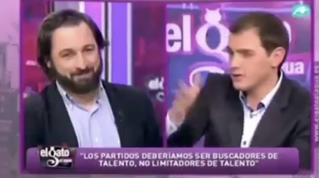 Tant és així que la xarxa no ha trigat a recuperar en un divertit vídeo el moment on Santiago Abascal, president de VOX, i Albert Rivera, president de Ciudadanos, es tiraven floretes en directe durant la tertúlia nacionalista d’El gato al agua de la cadena Intereconomia. El vídeo, del febrer del 2014, és l’inici d’una història d’amor que emociona els fervorosos defensors del nacionalisme espanyol.