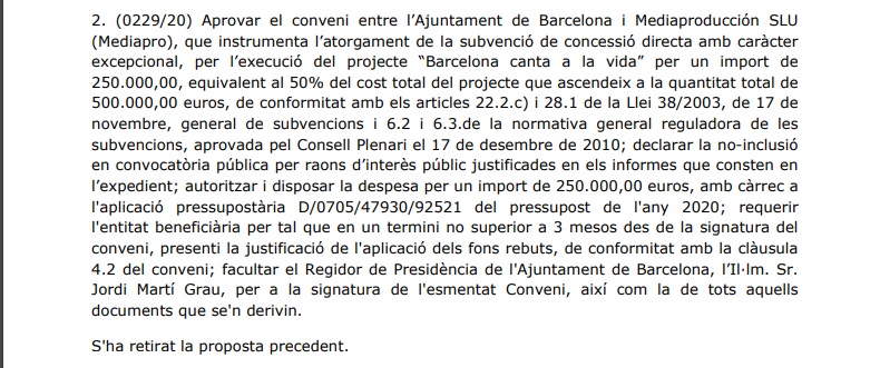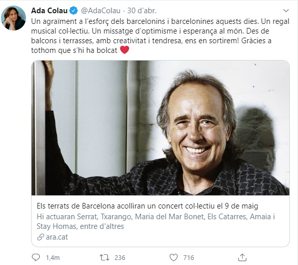 Utilitzar l’estat d’alarma per col·locar un concert per a gloria de l’alcaldessa mostra que el seu equip ha quedat desbordat per l’actitud de l’alcaldessa. Amagar que l’operació costava més de mig milió d’euros demostra la supèrbia de la seva actuació