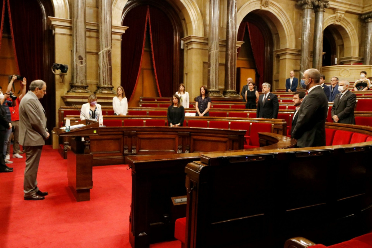 El president de la Generalitat, Quim Torra, ha iniciat el seu discurs sobre el ple de la covid-19 amb un minut de silenci per la memòria de les víctimes. Torra ha començat dient que no està “satisfet” davant del “drama humà” que suposa la crisi i la pèrdua de tantes vides. El president ha subratllat que cap governant pot “posar-se medalles” de la feina feta. Torra ha afegit que és un “orgull immens” formar part de la societat catalana i que tots els membres del Govern han fet un “gran esforç” durant la situació d’emergència. Al tercer minut de discurs, ha demanat als diputats presents a l’hemicicle -la majoria segueix el ple d’aquest dimecres a distància- que s’aixequin. Després ha fet una crida perquè les víctimes “no caiguin en l’oblit”.