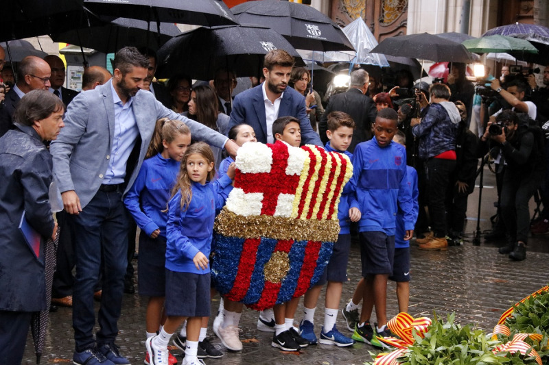 Ofrena floral del FC Barcelona al monument de Rafael Casanova, l’11 de setembre del 2019 (Horitzontal).