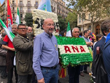 Una delegació de l’Aliança Lliure Europea, amb Diana Riba, en l’ofrena floral al monument a Rafael Casanova, l’11 de setembre del 2019 (Horitzontal).