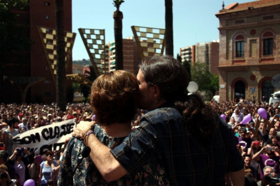 “Sí se puede”, “Pablo presidente, Ada alcaldesa”, “Esa esa esa, esa es la alcaldesa”, han estat alguns dels càntics que s'han escoltat a la Plaça Major de Nou Barris. Iglesias i Colau s'han mostrat units en el desig de “canviar-ho tot” i fer fora a la “casta”, primer dels ajuntaments i després de la Generalitat i la Moncloa.
