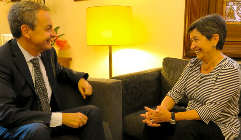 Després de la reunió, la delegada s'ha desplaçat amb l'expresident al Col·legi de l'Advocacia de Barcelona (Icab) on Zapatero ha pronunciat una conferència en el marc del cicle 'Esmorzars Solidaris a l'Icab'.
