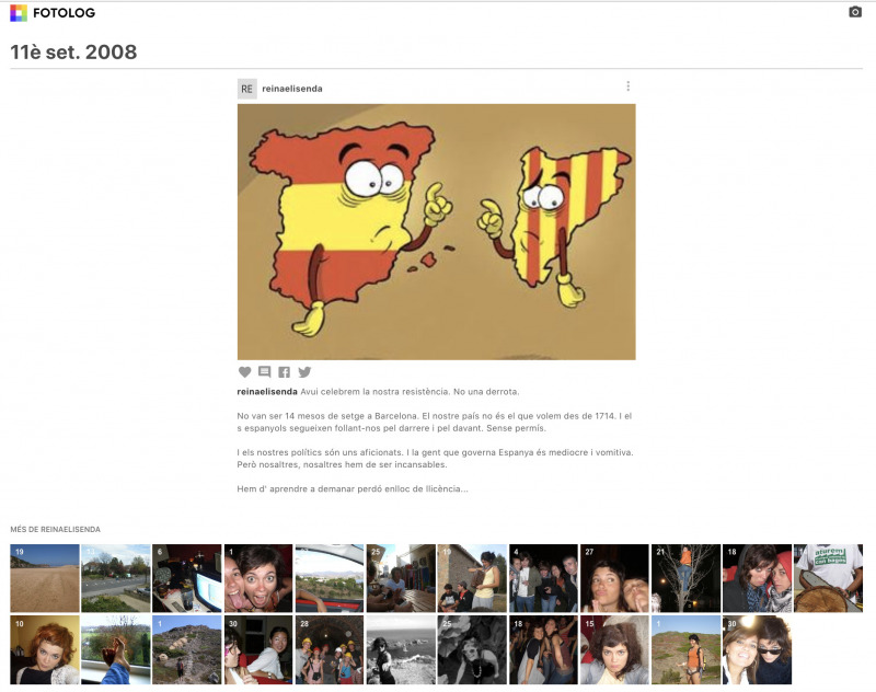 Una de les persones que feia ús d'aquesta xarxa era Elisenda Alamany, portaveu de Catalunya en Comú que durant la Diada Nacional del 2008 va assegurar que el país celebrava la seva “resistència”: “No van ser 14 mesos de setge a Barcelona. El nostre país no és el que volem des de 1714. I els espanyols segueixen follant-nos pel darrere i pel davant. Sense permís”. Segons la diputada dels comuns, en aquell moment sostenia que “els nostres polítics són uns aficionats. I la gent que governa Espanya és mediocre i vomitiva. Però nosaltres, nosaltres hem de ser incansables”.