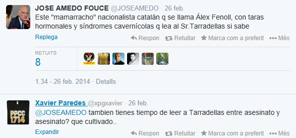 “Este “mamarracho” nacionalista catalán q se llama Álex Fenoll, con taras hormonales y síndromes cavernícolas q lea al Sr.Tarradellas si sabe”