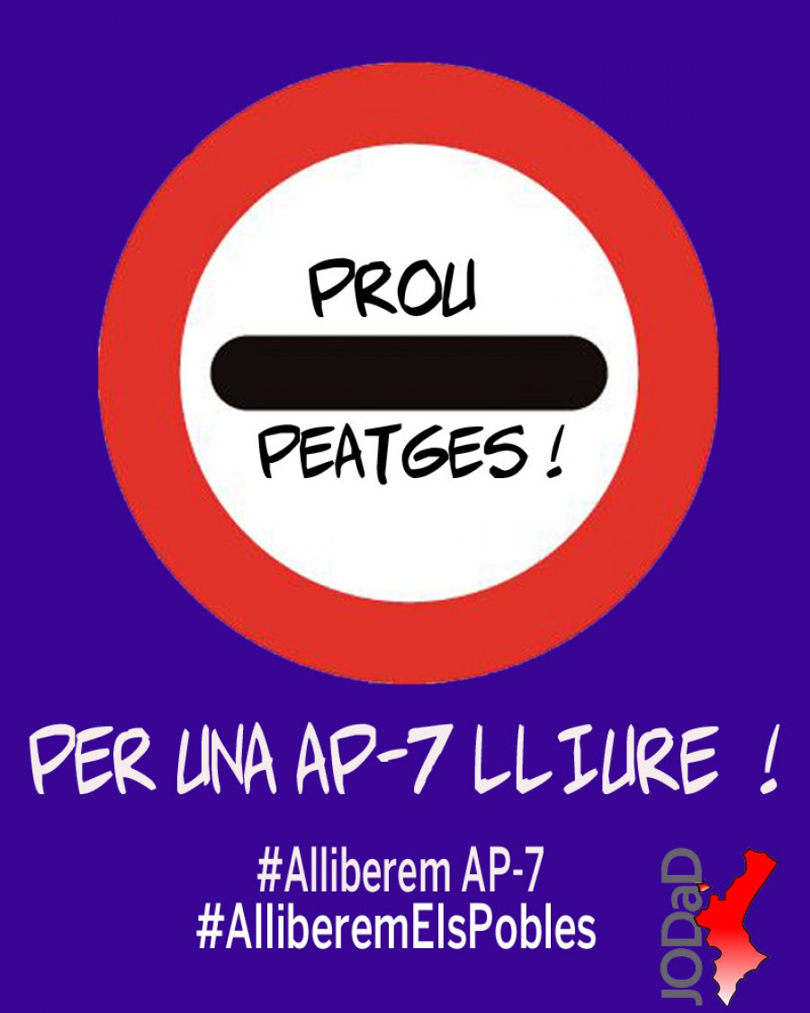 Diferents persones han començat una campanya per evitar l’ampliació de la concessió. @AllibereuAP7 recull els dies que manquen per la seva finalització, avui ja només 603 dies pel tram valencià i per tant el que passi al País Valencià tindrà repercussió al Principat. Seria interessant unificar esforços i començar a exigir la no ampliació de la concessió, podríem estar 25 anys més pagant per una autopista que ja ha estat amortitzada moltes vegades i que només serviria per omplir les butxaques de Florentino Pérez la seva llotja del Bernabeu a costa de Valencians i Catalans.