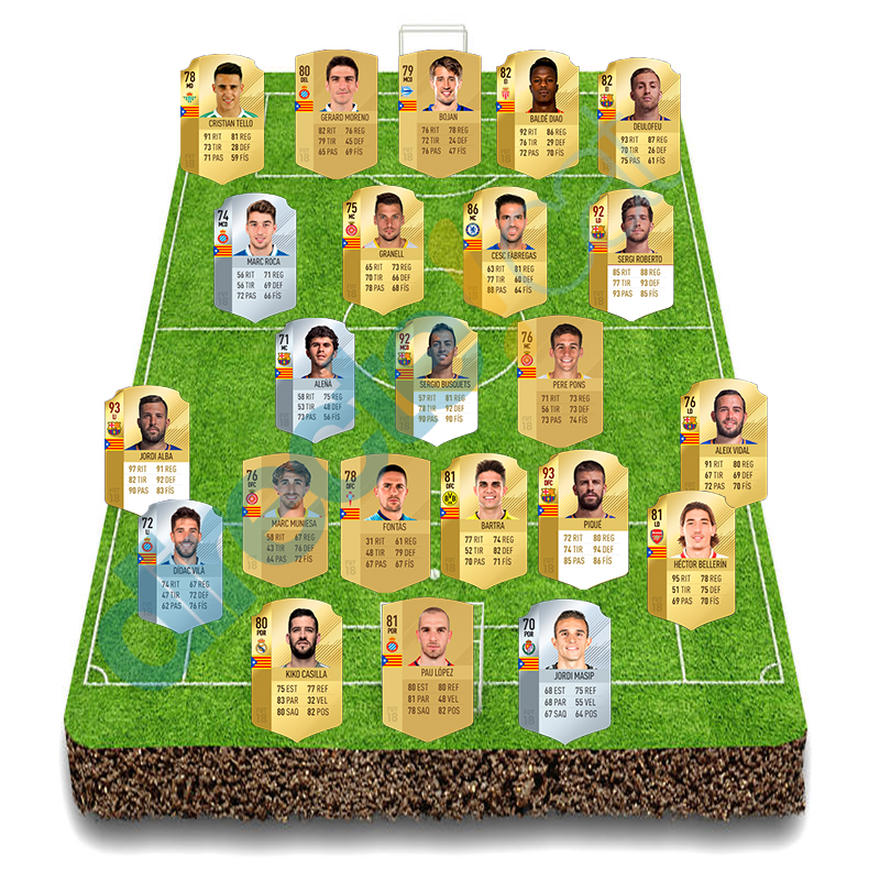 El tercer titular és que la Selecció Catalana obté unes mitges espectaculars si ens basem en la puntuació actualitzada en funció de com avancen les competicions oficials que fa EASports al seu web. La Segadora tindria les següents mitges sobre 100: