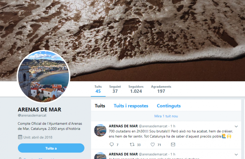 Sigui com sigui, la resposta a les xarxes ha estat immediata i Arenas de Mar ja té perfil “oficial” de Twitter. Amb pocs minuts d'existència ja supera les mil seguidors i va camí a convertir-se en un altre fenòmen viral a Internet a competir amb Sant Esteve de les Roures. Ara, està ver veure si, com va passar amb aquest poble inventat, fins i tot la Guardia Civil respon a les interpel·lacions futures pensant-se que és real.
