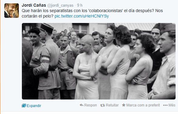 Cañas amb aquestes piulades vol atiar la por, l’odi i rebentar el procés democràtic per exercir el dret a decidir, el que no poden guanyar democràticament, ho volen guanyar amb violència. Els sectors activistes del sobiranisme no haurien de respondre a les seves provocacions perquè és el que Ciutadans persegueix per mostrar una sociatat catalana fracturada i als independentistes com elements violents.