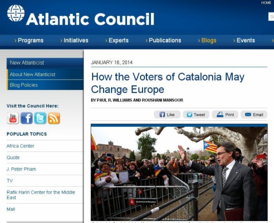 L'Atlantic Council afegeix que després la resta de la comunitat internacional “seguiria aquest model”. Pels experts, aquesta situació provocaria a Europa el doble de problemes, ja que es perpetuaria “un conflicte a Espanya” i alhora “es promourien altres referèndums d'independència”. A més, es crearia “un estat amb l'euro com a moneda, amb 7 milions de ciutadans que podrien acabar mantenint la seva ciutadania de la UE, però alhora vivint fora de la UE”. Per tot plegat, el consell d'aquests experts és que la Unió Europea elabori una estratègia comuna per fer front al repte sobiranista català.