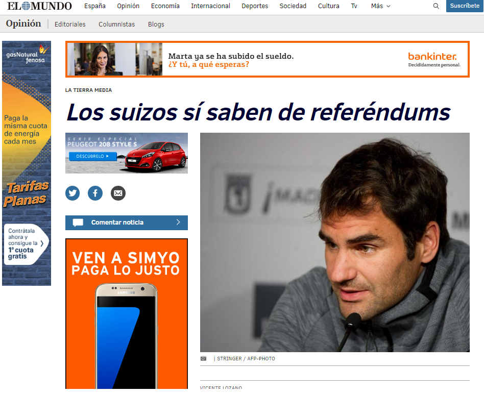 L’article acaba amb una reflexió dirigida als lectors: “Em diran que això ho poden fer perquè ja gaudeixen d’un altíssim nivell de vida, cosa que no passa a altres països. Els respondré que, potser, els suïssos tenen aquest altíssim nivell de vida perquè porten molt temps gestionant amb aquest formidable sentit comú”. Lozano, però, no esmenta que donar la possibilitat de decidir a la ciutadania podria formar part de l’èxit del país alpí.