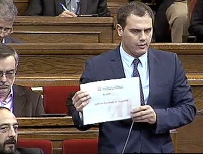 Rivera ha exhibit un document amb el logo de la Generalitat sense cap garantia de ser autèntic per reclamar la dimissió de Mas i acusar-lo de mentir. Mas s’ha referit implícitament a l’informe de la UDEF que el ministre de l’interior Jorge Fernández encara no ha pogut explicar i ha insistit que el document no existeix i per tant no ha costat un euro.