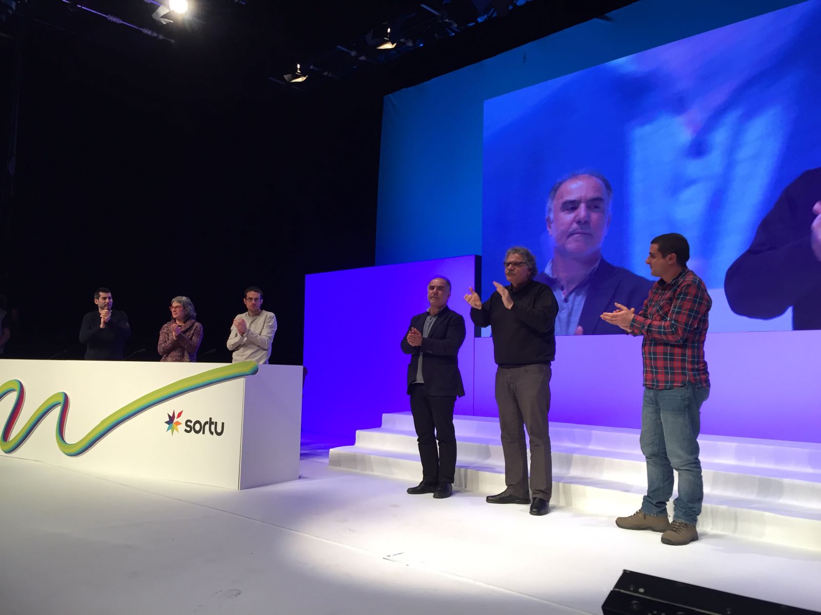Joan Tardà i Quim Arrufat han rebut avui una gran ovació dels assistents al congrés de Sortu després que aquests hagin mostrat el seu suport al projecte polític que avui ha escollit la seva nova direcció. El congrés, titulat ''Euskal Errepublika Sortu'', es proposa ser el punt de partida d'una nova manera de fer política perquè arribi a tots els bascos i comencin a treballar per fer possible la independència en un moment on Catalunya segueix imparable cap al referèndum.