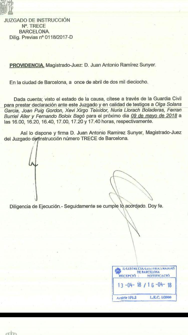 Consultat Joan Puig sobre si ha rebut la citació ens confirma que no, ha quedat assabentat al llegir la notícia publicada per l’Agència Catalana de Notícies, una manera singular del funcionament de la justícia espanyola.