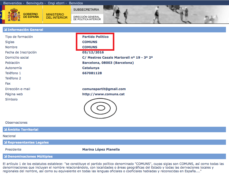 L'embrió del nou partit d'Ada Colau ja està registrat al Ministeri de l'Interior espanyol. La nova formació que encara no s'ha materialitzat ja acumula polèmiques com l'ús exclusiu del català menyspreant l'occità o oblidant l'esperit de ruptura amb el règim del 78 per “activar processos constituents que reforcin mútuament tant a Catalunya com Espanya”.