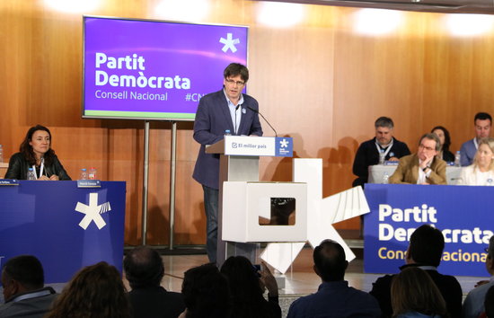 El president de la Generalitat, Carles Puigdemont, ha defensat la “via Catalana” com la “via correcta” per “defensar i exercir la sobirania” i per arribar a la independència. Ho ha dit en la seva intervenció en el Consell Nacional de PDeCAT, on el president de la formació i expresident del Govern, Artur Mas, ha subratllat que “el nostre és un procés i un pols completament democràtic i de tarannà completament pacífic, que no vol dir claudicant”, ha assenyalat. L'endemà que ETA hagi anunciat que entrega les armes, Mas ha ironitzat sobre la petició “d'altura de mires” que govern i dels partits del País Basc. “És com demanar als peixos que visquin fora de l'aigua”, ha apuntat.