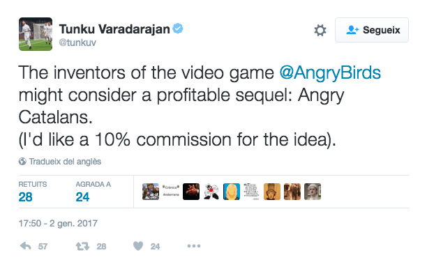 The inventors of the video game @AngryBirds might consider a profitable sequel: Angry Catalans.
