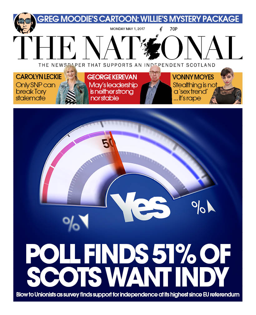 Segons publica el rotatiu, un 51% d’escocesos optaria pel Sí, mentre que un 48% ho faria pel No. Al voltant de 8 de cada deu escocesos independentistes optaria per romandre a la Unió Europea, mentre que els 2 restants voldrien quedar-ne al marge. A més, la mostra indica que la majoria de ciutadans, el 54%, té coll avall que la independència acabarà arribant d’una manera o altra en un termini màxim de 15 anys.