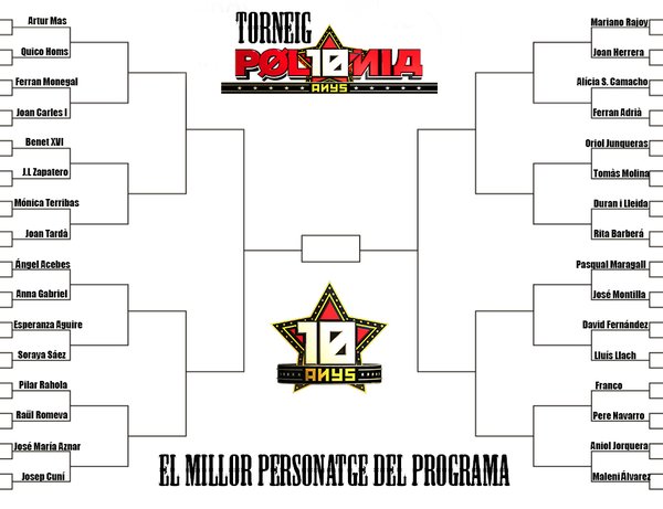 De moment, s’han assegurat el pas als vuitens de final de manera molt còmoda personatges com Artur Mas, Joan Carles I, Joan Tardà, Ángel Acebes, Mariano Rajoy o Pasqual Maragall, mentre que Oriol Junqueras, Soraya Sáenz de Santamaría o José Montilla han quedat fora. L'enfrontament més ajustat de moment ha estat entre Benet XVI i José Luis Rodríguez Zapatero, que s'ha endut el pontífex emèrit. L’últim cara a cara abans de passar a la segona ronda el disputaran l’exministra de Foment, Magdalena Álvarez, i l’historiador misogin i malparlat inventat pel Polònia anomenat Aniol Jorquera.