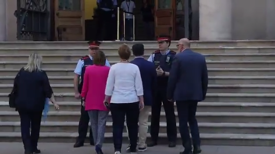 Quan Joan Josep Nuet ha anat a declarar avui al TSJC, els membres de la mesa del Parlament i la presidenta, que l'acompanyaven i li donaven suport, no han pogut pujar les escalinates del palau de la justícia. Els Mossos ho han impedit per ordres de la presidència del tribunal. Jordi Sánchez ho ha descrit com una imatge “tant trista com denunciable” i ha afegit “crec que és un fet que mai s'hauria de produir”.