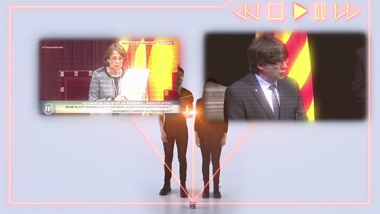 Al vídeo s'hi pot veure parella de joves davant de diferents pantalles que mostren les mobilitzacions sobiranistes i, àdhuc, s'hi poden veure els diferents responsables polítics espanyols que hi posen bastons a les rodes. Els dos joves es miren i tenen clar que volen tirar endavant i ràpid i premen el botó d'accelerar. El lema del vídeo és “El camí cap a la República Catalana ja no té aturador. Prem el botó FF!” en referència al fet que estem a la recta final i cal no aturar-se. És més, cal anar més de pressa.