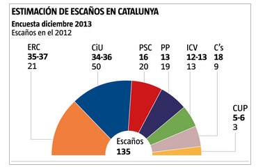 Majoria independentista d’ERC (35-37), CiU(34-36) i la CUP(6) amb ICV(12-13) aconsegueixen els 2/3 del Parlament.