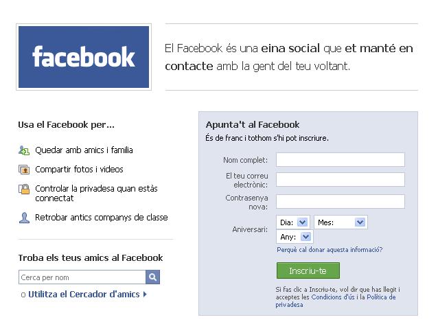 El Facebook, una de les xarxes socials més populars d’Internet basada en l’intercanvi de fotografies entre usuaris, ja disposa de versió en català. Ho va anunciar el responsable d’internacionalització del Facebook, Javier Olivan, al Barcelona Facebook Developer Garage.