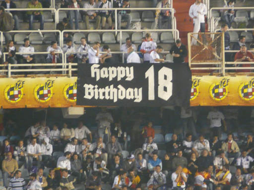 Amb aquestes companyies no és d’estranyar que els Ultrassur pengessin amb total impunitat una pancarta en què felicitaven l’aniversari a Adolf Hitler amb un ‘happy birthday 18’. El ‘1’ simbolitza la primera lletra de l’abecedari i el ‘8’ la quarta, les inicials d’Adolf Hitler. Un 20 d’abril però de 1889 havia nascut el führer i una efemèride així als ultres del Madrid, que mantenen una bona sintonia amb la directiva del club blanc, no els hi podia passar per alt. El significat de la pancarta i la intencionalitat és perfectament coneguda pels membres de la policia espanyola que a priori tenen com a tasca vigilar aquest tipus de grups.