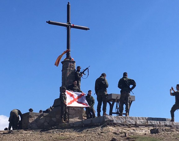 Durant el matí d'ahir, els militars van deixar-se veure sense miraments pel parc natural del Montseny i van arribar a pujar fins l'emblemàtic cim del Matagalls. Tal com ha pogut confirmar directe!cat, la foto es va fer el migdia, en un moment de descans dels soldats. La instantània, feta per un soci de CADCI i que prefereix mantenir-se en l'anonimat, mostra els militars desplegant una bandera amb un freqüent ús preconstitucional.