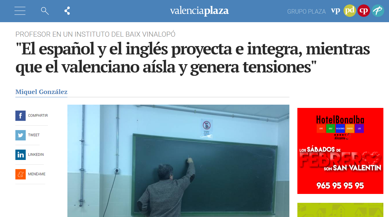 PLURILINGÜISMO El español y el inglés proyecta e integra, mientras q valenciano aísla y tensiona https://t.co/pU2vedKFHj vía @valenciaplaza
