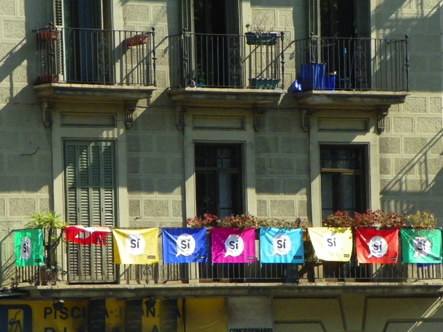 Aquesta família que resideix a l'Hospitalet de Llobregat té penjat al seu balcó diferents domassos amb missatges republicans com el 'Sí' del referèndum de l'1-O o també en defensa de la llibertat dels presos polítics i per reclamar democràcia.