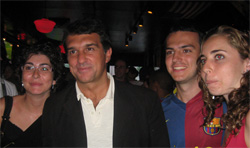 Joan Laporta ha estat rebut al bar Nevada Smith’s amb l’himne del Barça i ha estat acomiadat entre aplaudiments. Els aficionats no han parat de fotografiar-se amb ell o de demanar-li autògrafs. El president del Barça ha destacat ‘el bon ambient’ de l’afició novaiorquesa. ‘És magnífic venir a Nova York i poder viure un partit de futbol amb aquest ambient i amb barcelonistes d’arreu del món’, ha explicat Laporta.