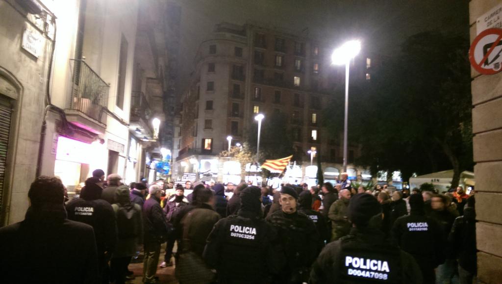 Entre la presència policial, s'han escoltat crits i llegit pancartes amb lemes com 'Otegi assassí', 'David Fernández amic de terroristes' i 'Catalunya no oblida'.