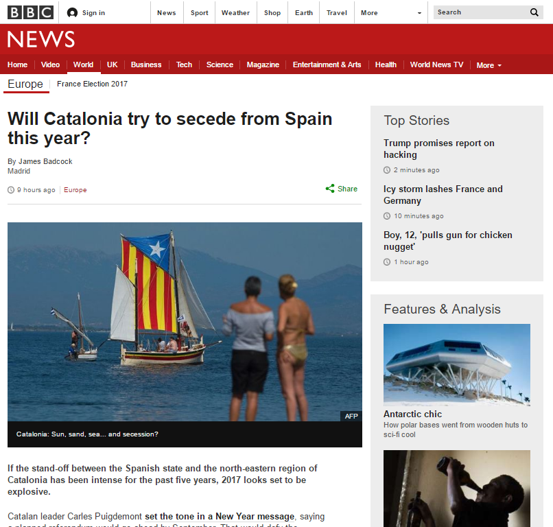 En l’anàlisi d’avui de la BBC, però, no s’inclou cap dels percentatges que explicita El Periódico, sinó que només s’aprofita l’única conclusió que el diari va ‘oblidar’ interpretant les dades: “Una enquesta recent publicada pel diari amb seu a Barcelona El Periódico, que no es visualitza com a independentista, suggeria que el 85% dels catalans volien un referèndum”. El mitjà britànic es limita a identificar-ne el biaix unionista, però el fet d’escollir l’única dada que no es dóna en l’article original és significatiu.
