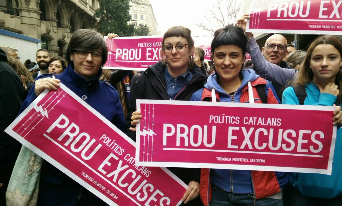 Missatge d'autoexigència dels cupaires, que un cop han abraçat el missatge “d'incompetències” que va etzibar Jordi Évole durant el concert de l'11 de febrer per acollir refugiats al Palau Sant Jordi, han volgut fer pública la inoperància dels seus diputats amb l'eslògan: “Polítics catalans, prou excuses. Trenquem fronteres. Desobeïm”.