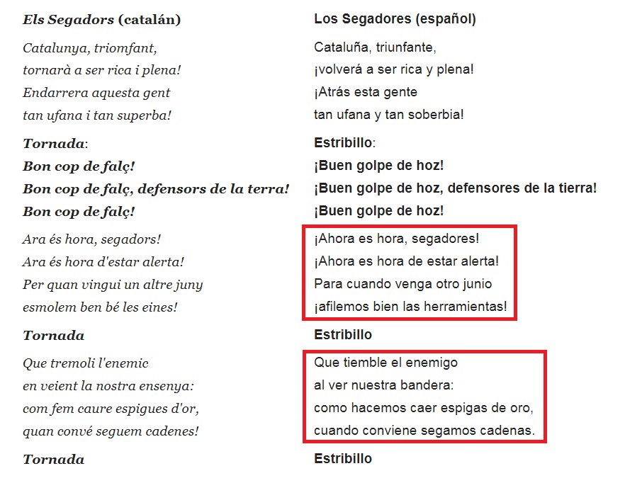 La denuncia més surrealista de la policia espanyola és refereix a la piulada en que el professor escriu: “Fins ara, ens hem ajustat a la primera estrofa dels Segadors. Des d'avui, hem d'activar la segona. I, quan estiguem preparats, hem d'encetar la tercera”. Als papers de la denúncia, la Guàrdia Civil assenyala aquesta publicació per afirmar que “a continuació copiem la lletra dels Segadors i posem en vermell la segona i tercera estrofes”. “I sí, tu, agafen la Wikipèdia i en posen un pantallasso a la denúncia (la lletra dels Segadors, denunciada, au!)”, explica Manel Riu.