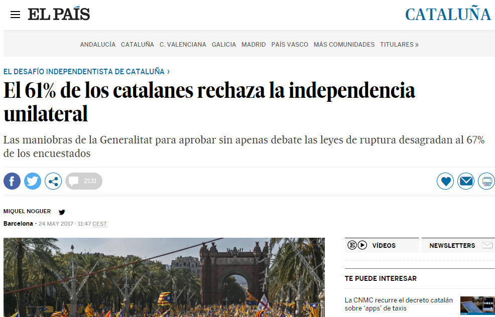 La resposta està desglossada per partits i els tants per cents de vot que votaria sí o no dels seus votants. És curiós observar com tot i que el partit majoritari, dividit entre ERC i PDeCAT, Junts pel Sí, més els vots de la CUP, alguns del PSC i dels comuns, només surti un 42% de 'Sí' davant un 49% de 'No'.
