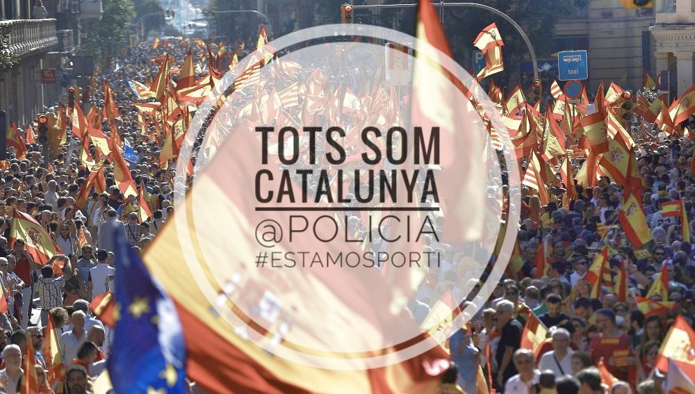De les moltes mostres de suport que ha rebut Societat Civil Catalana, entre les quals hi ha la Falange, el PSC, PP i C's, hi ha també la de la Policia Nacional espanyola, allotjada encara en territori català, que a través del seu compte de Twitter no només ha mostrat el seu suport a la marxa del nacionalisme espanyol al Passeig de Gràcia, sinó que, a més, ha aprofitat per tirar més llenya al foc de la intervenció il·legal de la Generalitat afirmant que “defensarem l'Estat de Dret i la legalitat per tots, per la unitat i la sensatesa”.