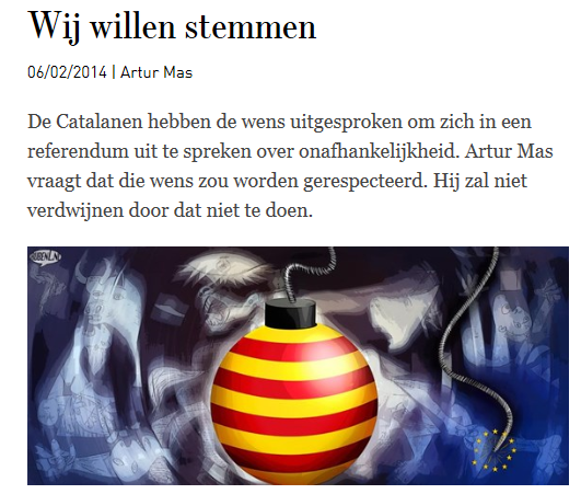 El president Mas defensa que Catalunya és part d'Europa i que vol exercir el seu paper “en una pacífica i pròspera Unió Europea” com ho ha fet fins ara. “no hi ha dubte que el referèndum del dia 9 de novembre presenta molts desafiaments per Catalunya, Espanya i la Unió Europea”, subratlla mas en l'article, “però no es pot ignorar”.