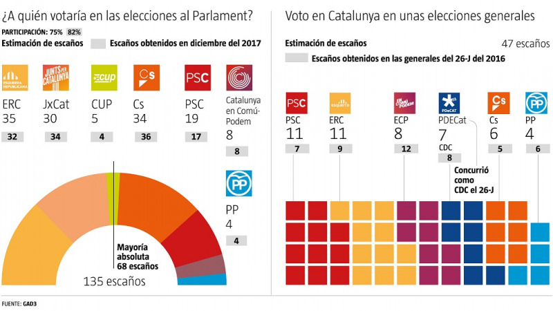 El PSC(11) guanyaria les eleccions espanyoles a Catalunya, seguida d’ERC (11) i derrota de els comuns (8), el PDECAT (ara ja no es presentaria amb aquest nom) es manté amb 7 escons