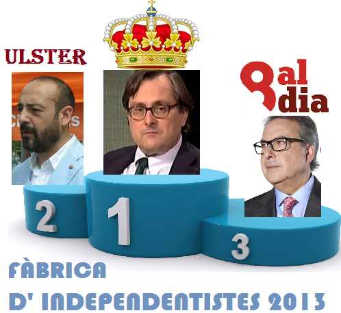 Ha estat sens dubte un brillant i merescut guanyador d’aquest primer premi “Fabrica d’Independentistes 2013” el seu mentor, editor i financer, el Sr. Lara, pot estar orgullós, les seves portades han estat un èxit sense precedents en l’augment del procés sobiranista, cada nit milers de catalans esperen l’avançament de la portada de La Razón per anar dormir una mica més contents cada dia, un orgull del periodisme èpic que aconsegueix d’en mica en mica omplir la pica de nous i entusiasmats independentistes incrèduls davant els mals auguris que Paco Marhuenda ens explica cada nit.
